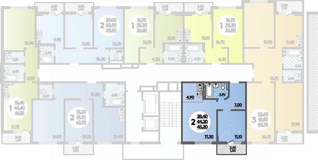 Продаётся 2-комнатная квартира в сданном доме (Литер 8.3), срок сдачи: III-кв. 2023, общей площадью 45.2 кв.м., на 14 этаже. ВЫГОДНОЕ РАСПОЛОЖЕНИЕ