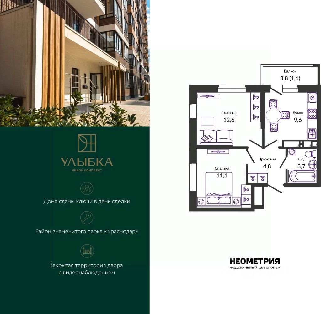 Продается квартира в жилом комплексе "Улыбка" от федерального девелопера "Неометрия". Все дома сданы, ключи в день сделки.
