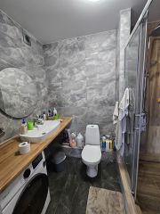 Санузел в современной отделке, вся необходимая сантехника, теплый пол установлены.