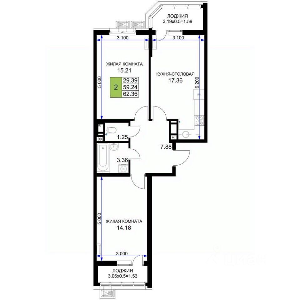 62,36 м²