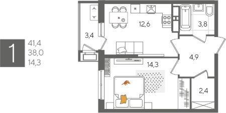 В продаже 1-комнатная квартира от застройщика! ЖК "Рекорд" 2 очередь, г. Краснодар, Литер 6 Срок сдачи: 4 кв. 2026, общей площадью 41.4 кв.м., на 17 этаже.