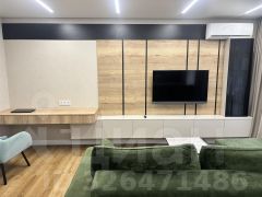 Квартира выполнена по авторскому дизайну с использованием качественных материалов. Планировка пространства отвечает потребностям современного человека: просторная гостиная с кухней и спальня с гардеробной.