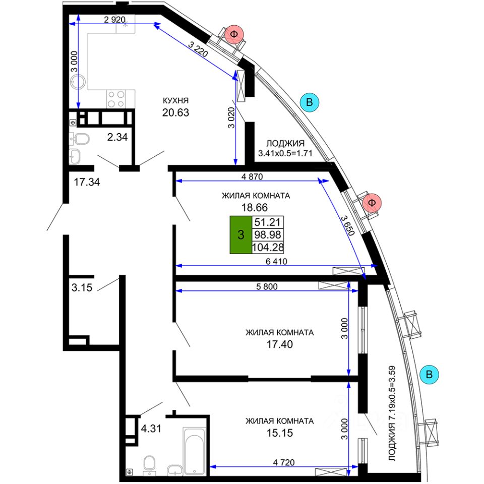 Общая площадь104,28 м²