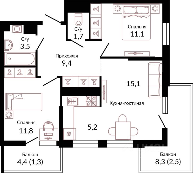 Продаётся 2-комнатная квартира в сданном доме (Литер 2.2), срок сдачи: II-кв. 2023, общей площадью 63.2 кв.м., на 11 этаже. Жилой комплекс по адресу: г. Краснодар, Прикубанский внутригородской округ, отделение почтовой связи Калинино.