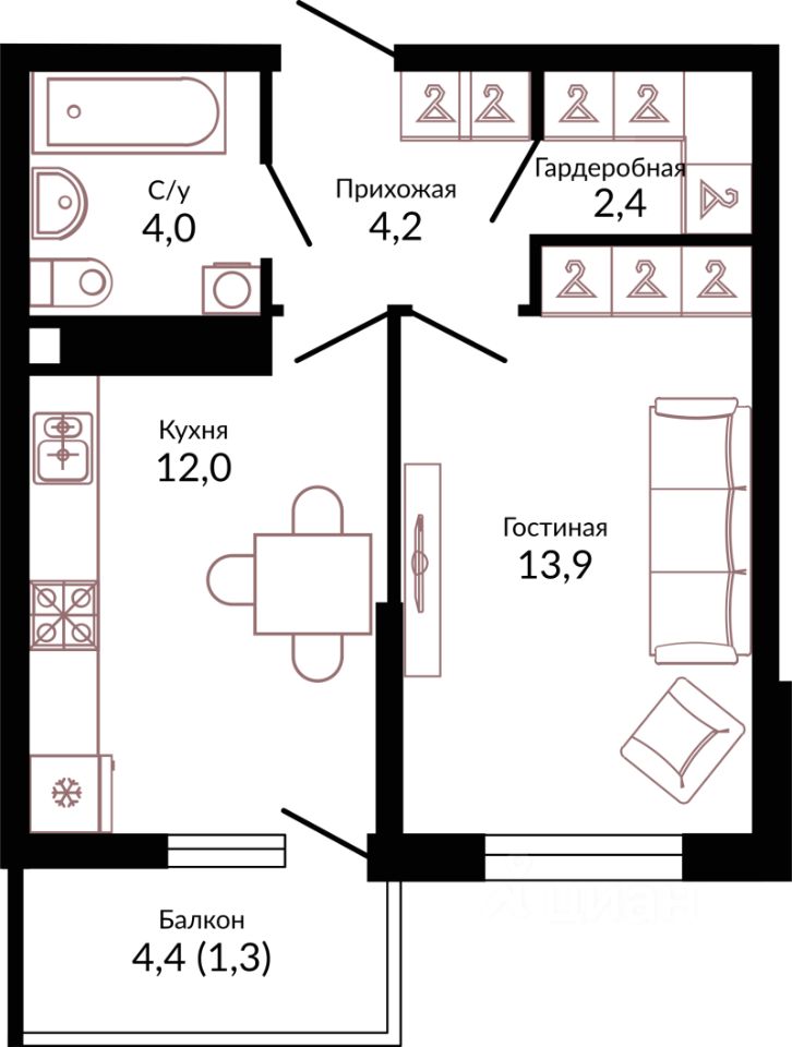 Продаётся 1-комнатная квартира в сданном доме (Литер 1.2), срок сдачи: IV-кв. 2024, общей площадью 39.3 кв.м., на 8 этаже. Жилой комплекс по адресу: г. Краснодар, Прикубанский внутригородской округ, отделение почтовой связи Калинино.