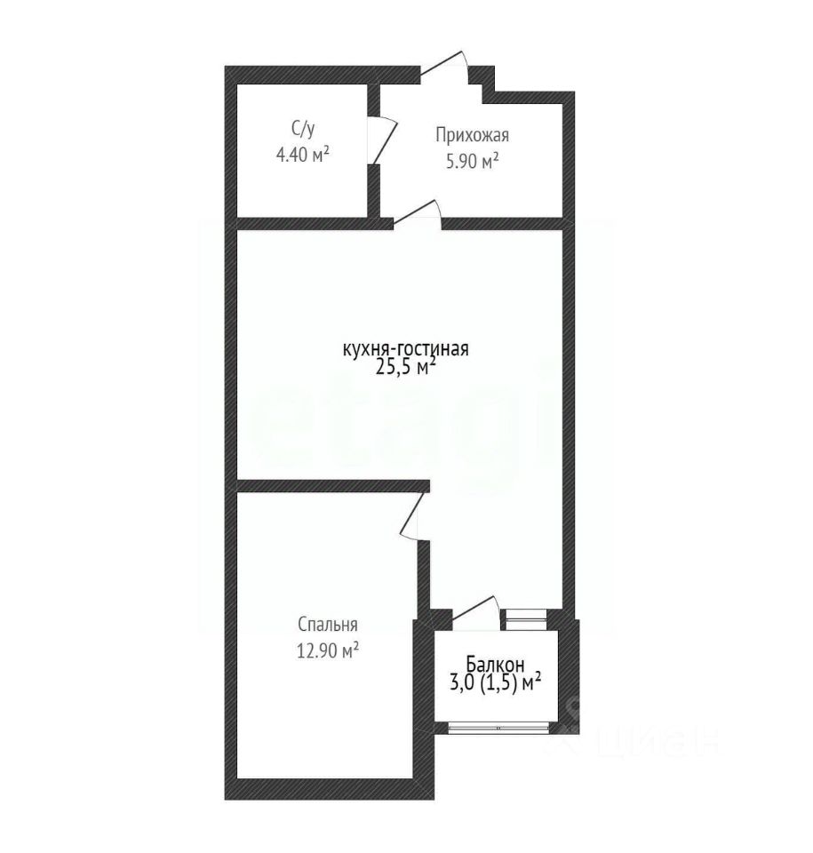 Грамотная планировка формата ЕВРО2: большая кухнягостиная + отдельная спальня.