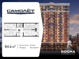 В продаже 3-комнатная квартира от застройщика! Мкр. "Самолет" 4 очередь, г. Краснодар, Литер 19 Срок сдачи: 3 кв. 2023, общей площадью 84.6 кв.м., на 16 этаже.