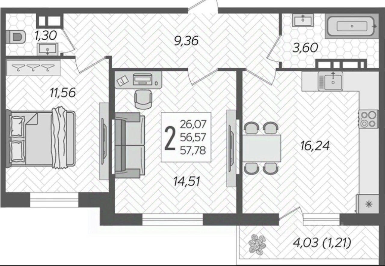 57,78 м²