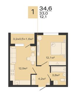 Общая площадь34,6 м²