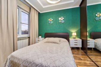 Квартира — на комфортном среднем этаже, отличная планировка: родительская комната — без соседей, просторный зал, хорошая кухня, есть спортивный уголок, две детские спальни — просторные и уютные!