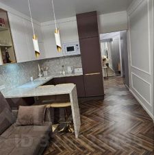 Квартира оснащена премиальной встроенной мебелью, изготовленной под заказ, и современной техникой, включая духовой шкаф и индукционную варочную поверхность Midea, вытяжку Kuppersberg, посудомоечную машину и холодильник Midea, стиральную машину с функцией сушки Hotpoint, а также дизайнерскую сплит-систему Haier и смарт-телевизор LG.