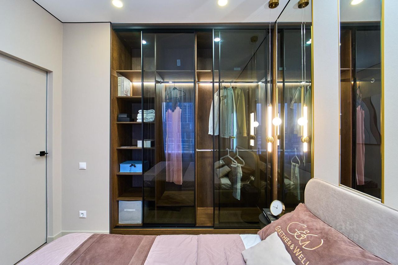 Квартира находится на видовом этаже, откуда открывается великолепный вид на город через увеличенные окна, её общая площадь 30 м2, выполнен дизайнерский ремонт, любая деталь была продумана до мелочей, всё сделано в едином стиле, каждый узел примыкания сформирован для удобства и гармоничной жизни в квартире.