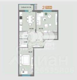 Объект 48264. Продается ПРОСТОРНАЯ 2-КОМНАТНАЯ КВАРТИРА С ПРЕДЧИСТОВОЙ отделкой в г.Темрюк.