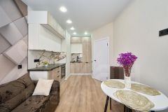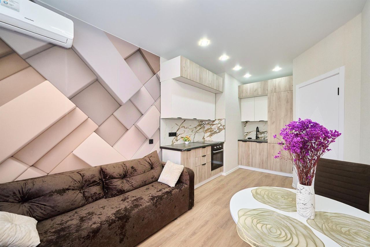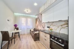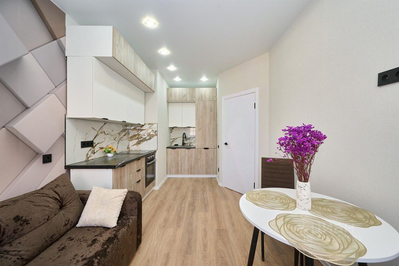 Продам однокомнатную квартиру с новым ремонтом, мебелью и техникой. Интересная планировка c большой кухней-гостиной и ленточным балконом. Балкон застеклён, утеплён и обустроен для жизни. В квартире выполнен дизайнерский ремонт, установлена новая мебель и бытовая техника. Квартира новая, никто не жил.