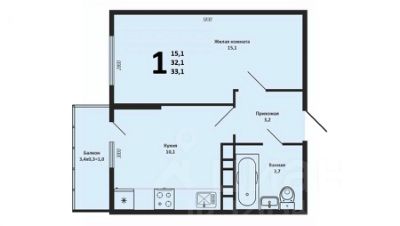 - Комната: 15,4 м²