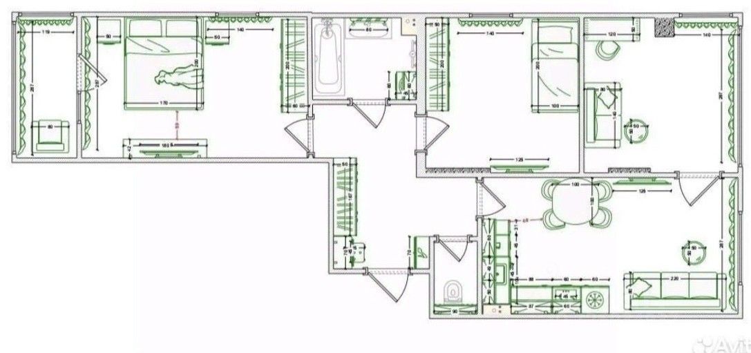 -Высокие потолки 3 м, наполняют квартиру воздухом и светом.