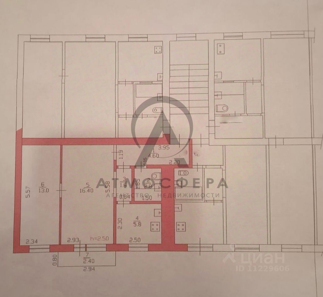 Две большие смежные жилые комнаты, санузел, высокие потолки 2,8 м