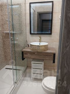 Тип санузла: совмещённый, оформлен стильной плиткой
