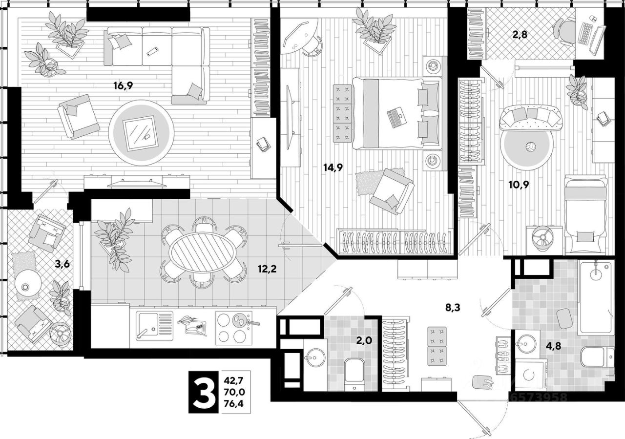 42,7 м²