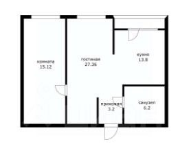 Просторная планировка, кухня 13,8 м2, зал 27,36 м2, спальня 15,12 м2,.