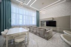 Расположен в ЖК "Большой", на стилобате ТЦ "Центр Города". В пентхаусе сделан дизайнерский ремонт в современном стиле мебель и основные материалы для ремонта приобретались в Италии и Испании. В кухне-гостиной (40 кв.м) кухонный гарнитур и мебель для гостиной изготовлены на мебельной фабрике Аран в едином цветовом решении, диван, столовая зона также изготовлены в Италии, спальный гарнитур и диван в спальне изготовлены в Испании. На полу в гостиной и в спальне прикроватные бельгийские коврики. Покрывала отшиты по индивидуальному заказу, как и тюли и портьеры, учитывая высоту потолка 4,1 м. В квартире сделано многоуровневое потолочное освещение, парящий потолок, несколько внутренних и внешних подсветок, люстры по зонам и подвесные светильники, также сделаны светильники в стеновых панелях. На каждом окне сделаны дополнительно защищающие от солнца рулонные шторы. Пентхаус имеет два уровня, в одной из спален на втором этаже расположено спальное место (+12 кв.м к площади), откуда имеется выход в кладовое помещение (+8кв.м к площади) на втором уровне. Лестница наверх сделана из массива дуба, перила из закаленного стекла. В комнатах огромнейшее количество мест для хранения (шкафы в гостиной , в спальнях, места хранения под лестницей в виде шкафов), также на лоджии расположен бельевой шкаф для хранения постельного белья и полотенец. В ванной комнате есть бытовой отсек, где установлен бойлер, система протечки воды, что не мало важно имеется пожарный рукав!!! Также в ванной имеется гигиенический душ, теплый пол, стирально-сушильная машина и встроенный бытовой шкаф с зеркалами. Вся техника в квартире бренда Electrolux (два встроенных холодильника , духовой шкаф, варочная панель, микроволновая печь, посудомоечная машина). В гостиной и спальне два больших телевизора Sony. Также пентхаус расположен в отдельном закрытом холле, где еще два пентхауса и прекрасные соседи, общий холл с соседями также закрыт от лифтового холла и оборудован камерой видео наблюдения. Квартира также оборудована видеодомофоном и системой телефонной сигнализации! Также немаловажно, что подъезд расположен вдали от увеселительных мероприятий на фуд-корте Центра Города, что не мешает отдыху в любое время суток. В Пентхаусе все продумано и сделано для удобной комфортной и счастливой жизни!