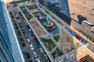 Инфраструктура района хорошо развита, в шаговой доступности находятся новая школа, детские сады, Екатерининская клиника, Храм, прогулочные аллеи с фонтанами, ТРЦ Любимово и прочее.