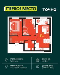 Жилой район "Первое место"- один из самых масштабных проектов в России. На территории 71 га 18 кварталов, 31 дом переменной этажности от 8 до 18 этажей, собственный парк 9 га, храмовый комплекс, пешеходный бульвар "Круг семьи", детские и спортивные площадки, мангальные зоны и различные локации для отдыха. В шаговой доступности действующие муниципальные образовательные учреждения: школа на 1 100 мест и детский сад на 250 мест. Помимо этого, в жилом районе "Первое место" построятся школа на 1700 мест с крытым 25-метровым бассейном и 5 детских садов на 1 490 мест. На первых этажах многоуровневых парковок "паркхабов" разместится более 61 тыс м2 коммерческих помещений. Жителям будут доступны собственный фитнес-центр, кафе, рестораны и магазины. В каждом подъезде предусмотрены дизайнерские холлы в стиле лобби отелей, консьерж-сервис, лапомойки, отдельные колясочные и велосипедные. Также в домах будут просторные кладовые помещения и комнаты для хранения почты с почтоматами для получения посылок из маркетплейсов.