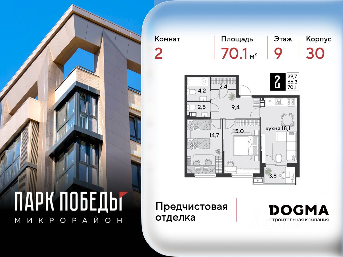 В продаже 2-комнатная квартира от застройщика! ЖК "Парк Победы 2", г. Краснодар, Литер 30 Срок сдачи: 4 кв. 2025, общей площадью 70.1 кв.м., на 9 этаже. Концептуально новый микрорайон "ПАРК ПОБЕДЫ" - это статная архитектура, вдохновленная наследием страны. Уникальное культурное пространство в стиле сталинского ампира, который отличает монументальность, классические пропорции и четкость линий. •Безбарьерная среда •Сквозные подъезды •Авторские лобби •Видовые квартиры с панорамным остеклением •Квартиры с мастер-спальнями и отдельными гардеробными •Потолки 3 метра •Улучшенная отделка от застройщика •Подземный паркинг и кладовые •Дворы без машин с видеонаблюдением •Круглосуточный пост охраны •Школа для 1 550 учеников •4 детских сада •Уличные тренажёры, зоны для пинг-понга и йоги •Крытый боксёрский ринг •Собственный пешеходный бульвар •Прогулочные аллеи с фонтаном •Коммерческие помещения на первых этажах Приобрести квартиру можно одним из способов: -субсидированная семейная ипотека 4,5 % на весь срок -рассрочка до конца строительства -оплата наличными -дистанционная покупка Позвоните сейчас и забронируйте квартиру со скидкой!
