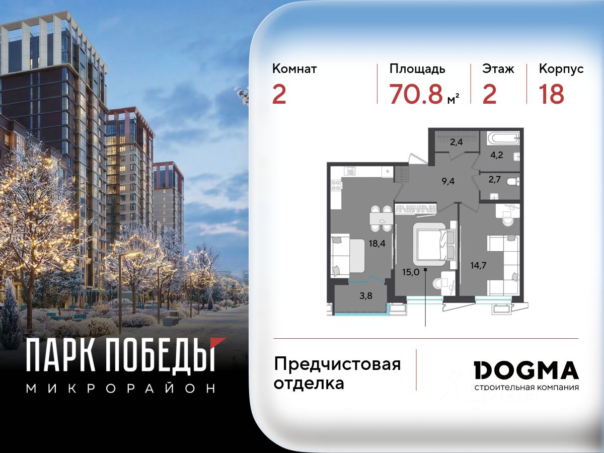 В продаже 2-комнатная квартира от застройщика! ЖК "Парк Победы 2", г. Краснодар, Литер 18