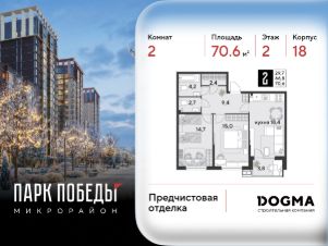 Срок сдачи: 1 кв. 2026, общей площадью 70.6 кв.м., на 2 этаже.