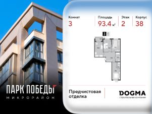 Срок сдачи: 3 кв. 2026, общей площадью 93.4 кв.м., на 2 этаже.