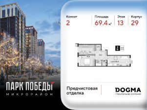 Срок сдачи: 1 кв. 2026, общей площадью 69.4 кв.м., на 13 этаже.