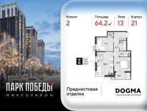 Срок сдачи: 1 кв. 2026, общей площадью 64.2 кв.м., на 13 этаже.