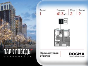 Срок сдачи: 2 кв. 2026, общей площадью 41.3 кв.м., на 2 этаже.