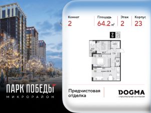 Срок сдачи: 1 кв. 2026, общей площадью 64.2 кв.м., на 2 этаже.