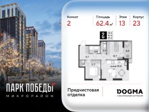 Срок сдачи: 1 кв. 2026, общей площадью 62.4 кв.м., на 13 этаже.
