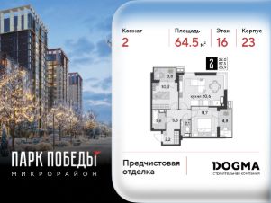 Срок сдачи: 1 кв. 2026, общей площадью 64.5 кв.м., на 16 этаже.