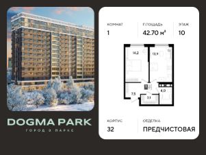 В продаже 1-комнатная квартира от застройщика! Мкр. "DOGMA PARK" г. Краснодар, Литер 32 Срок сдачи: 3 кв. 2027, общей площадью 42.7 кв.м., на 10 этаже.