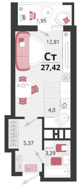 Продаётся 1-комнатная квартира в строящемся доме (Литер 15), срок сдачи: II-кв. 2026, общей площадью 27.42 кв.м., на 3 этаже. "Родные просторы"- самодостаточный