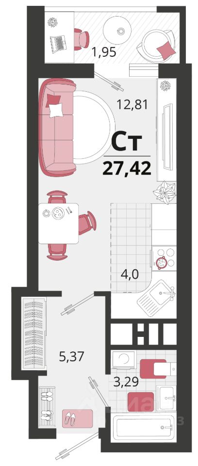 Продаётся 1-комнатная квартира в строящемся доме (Литер 15), срок сдачи: II-кв. 2026, общей площадью 27.42 кв.м., на 7 этаже. "Родные просторы"- самодостаточный