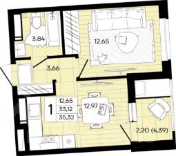 Общая площадь35,41 м²
