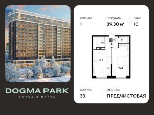 В продаже 1-комнатная квартира от застройщика! Мкр. "DOGMA PARK" г. Краснодар, Литер 31 Срок сдачи: 3 кв. 2027, общей площадью 39.3 кв.м., на 10 этаже.