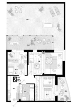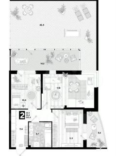 Террасы: закрытая (14,2 кв.м) + открытая (48,4 кв.м), которые также оформляются в собственность при сделке! Итого площадь - 117,8 м ² , позволит вам наслаждаться утренним кофе под солнцем, устраивать вечерние посиделки с видом на зелень или даже мини-огородик — всё возможно!