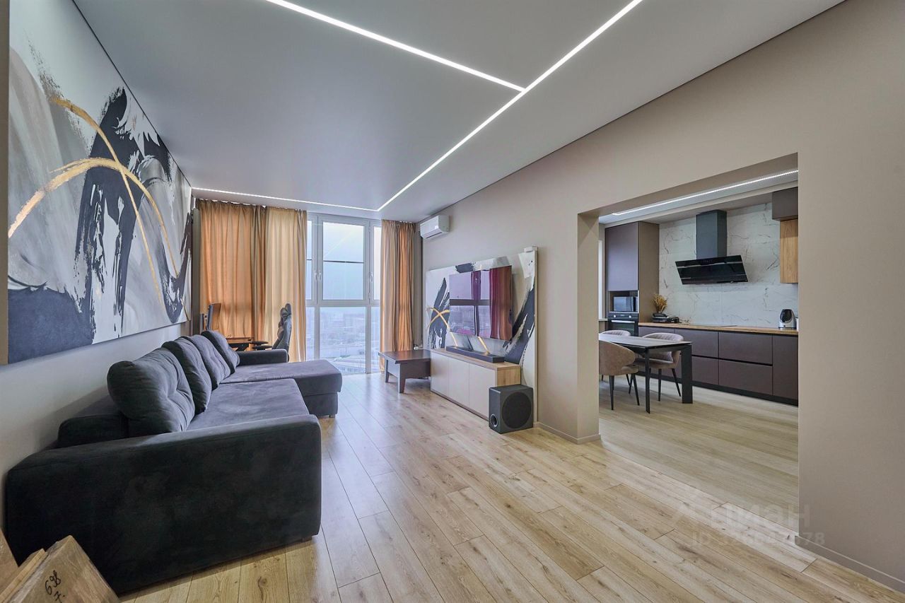 Комплекс расположен в Историческом центре города Краснодара на берегу реки Кубань. Квартира с новым дизайнерским ремонтом, общая площадь с учетом балкона 82м2, планировка: кухня 18,8м2,спальня 16м2 и гостиная 23,5м2 с панорамным остеклением, гардеробная, раздельный санузел.