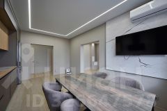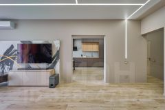 В квартире выполнен ремонт из премиальных материалов в современном стиле, плитка Испания PORCELANOSA , ручная роспись на пано в гостиной и на кухне, краска на стенах английского производителя Little Greene, дизайнерские радиаторы Loten, регулируемая RGB подсветка, мебель изготавливалась эксклюзивно на заказ, брендовая техника .
