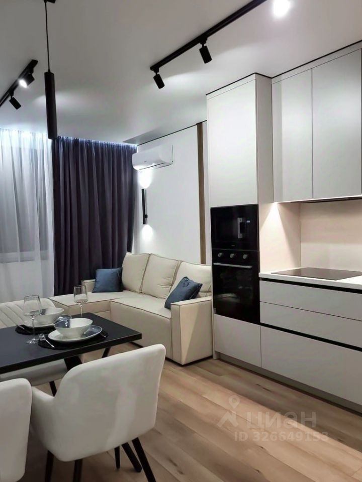 Планировочное решение квартиры продумано до мелочей: две изолированные комнаты, просторная кухня-гостиная и совмещённый санузел. Интерьер выполнен в свежих и современных тонах, что придаёт пространству стильный и функциональный вид.
