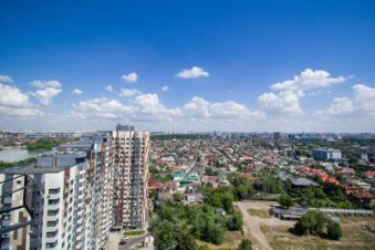 окна на три стороны: город, парковая зона и река Кубань, новый мост