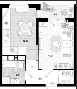 Квартира готова к проживанию, полностью меблирована, установлена необходимая мебель и бытовая техника. Сплит система, варочная поверхность, духовой шкаф, холодильник, стиральная машина, вытяжка, обеденный стол со стульями, кухонный гарнитур, холодильник, диван, двухспальная кровать с ортопедическим матрасом, шторы.