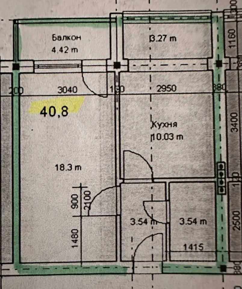 Площадь: 38.8 м², функциональная изолированная планировка.