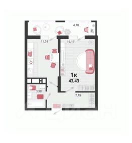 В продаже однокомнатная квартира в ЖК "Родные Просторы"!